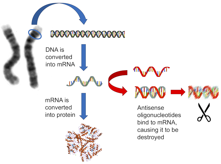 Fuente: https://theconversation.com/antisense-therapy-a-promising-new-way-to-treat-neurological-disease-89006