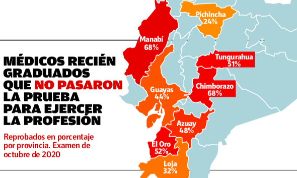 Fuente de la Información: https://www.vistazo.com/seccion/podcast/por-que-el-53-de-graduados-de-medicina-en-ecuador-no-aprobo-el-examen-que-los