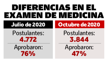 Esto quiere decir que, cada grupo de graduados rinde la prueba y, posteriormente, un comité de profesores de las universidades y expertos del Caces, fija el puntaje mínimo. La diferencia sería que, mientras el grupo de julio fue el primero en rendir la prueba de forma virtual y en el peor momento de la pandemia, el grupo de octubre ya estaba mejor preparado y, por tanto, su rendimiento fue más alto.