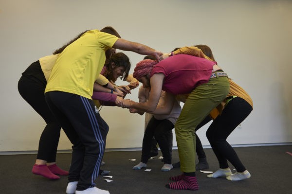 Cuando hablamos de bailar, hablamos de bailar juntas, de mantener la escucha sobre el cuerpo de los otros y de subvertir, desde los cuidados, los mandatos de la individualidad patriarcal, la idea de genio, el virtuosismo sagrado, la competitividad y el esfuerzo como reglas supremas del juego. Bailar juntas nos impulsa a desterrar las nociones universalistas y definitivamente coloniales de la modernidad para posibilitarnos crear otras formas de estar basadas en la escucha frente al enunciado, la diversidad frente a la blanquitud, el reconocimiento frente al ego y la alegría generativa frente a la crítica antiutópica. Recordemos la idea central de que el esfuerzo solo lleva al fracaso, porque solo desde una lógica afirmativa del placer seremos capaces de desestabilizar las nociones canónicas que nos abrasan.